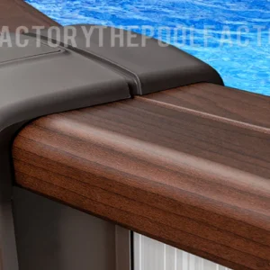 The Daytona introduces textures, colors, angles and even proportions with the introduction of wood patterns through new printing technology. This technology has never been seen before on above ground pools. The Daytona’s structural parts are treated with a double coating of heat setting polyester that ensures a great look for a long time. The top seats are printed with a Walnut pattern and offers a Bronzed steel look with Metallic Highlights. It’s reinforced steel core with anti-corrosion coating of Magnesium, Copper & Aluminum increases rust protection by 72%. Combined with the wall’s graphic, Daytona achieves an unparalleled level of quality.
