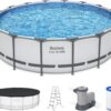 It doesn’t get any better than having your very own pool in your backyard! The Bestway® Steel Pro MAX™ Above Ground Pool offers an ultra durable option at a great price. Durable Construction The corrosion-resistant steel frame is equipped with our FrameLink System™ for a sturdy and secure frame connection. The DuraPlus™ liner is made of durable material that is reinforced for strength and puncture-resistance. Additional Features This above ground pool set also comes stocked with a filter pump to keep the pool water looking crystal clear. Plus, this pool is very simple to set up and to take down for off-season storage. No tools are required, and a hose connects to the built-in flow control valve to quickly and easily drain away pool water. Spend your summer on the water in this Bestway Steel Pro MAX pool!