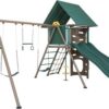 The Adventure Tower Deluxe Playset from Lifetime Products is full of exciting activities for children of all ages. Constructed of UV-protected high-density polyethylene (HDPE) and powder-coated steel, it’s durable, weather-resistant, and will not warp, rot, crack, or splinter. From the swing set and slide to the rock climbing walls, your kids will have no problem finding plenty of features to keep busy with. So let your kids enjoy the features and activities while you enjoy the low-maintenance and safety of a Lifetime Playset. Features 5′ tall decking with hard top clubhouse, sandbox, (2) doors, (4) storefronts, (2) rock climbing walls, (1) 9′ wavy slide, (1) steering wheel, (1) trapeze, (2) chalk boards, (1) arched climber, car map, (2) swings, monkey bars, and (1) fireman pole. This model comes in earth tone (green, brown, tan). Great for 3 to 12 year olds and can handle up to 10 players. 5-year limited warranty.
