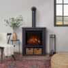 Enjoy all the warmth and comfort of a traditional fire with this free-standing electric fireplace. The Foster, designed to look like a built-in wood stove offers a flame effect that looks like a real fireplace, multiple heat settings, and a stove pipe. The compact footprint makes it perfect for any living space.